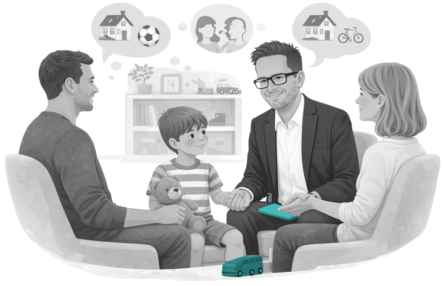 Zu Beginn kläre ich den Auftrag, den rechtlichen Rahmen sowie die Bedürfnisse des Kindes. Je nach Situation finden vorbereitende Gespräche mit beiden Elternteilen statt.